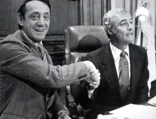 Pero en este país como es América (aunque no necesitaríamos cruzar el charco para hablar de esto) nos encontramos también con el otro lado de la moneda. A la vez que las películas porno se convertían en éxitos de taquilla, quitaban la foto de la actriz principal que aparecía en una publicidad de detergentes…parece ser que esa mujer no podía estar en la gran pantalla a la vez que en el armario de la cocina. Y, por otro lado, la ilusión y esperanza de los homosexuales se veía truncada siendo Harvey Milk asesinado, junto con el alcalde de San Francisco,por una persona que declaró que había enloquecido ¡por comer comida basura! y sólo fue condenado a la pena mínima, a pesar de haber matado a 2 personas…si ahí no hay un componente homofóbico que me lo digan.